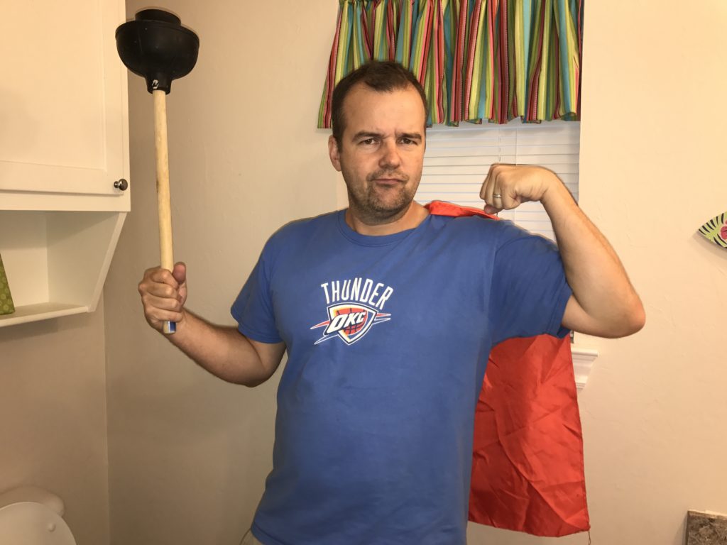 The only way to describe my hammer was “tiny.” I looked like I was equipped to assemble a doll house. I didn’t have a tool belt. I had a belt. And this was to keep my pants up. There were a couple of times where I relied on a wire clothes hanger as a tool. A wire clothes hanger. There was one thing I could always fix though without fail. I even had the right tool. I could unclog a toilet. I was so good at it that I felt like I should be wearing a cape when duty called.