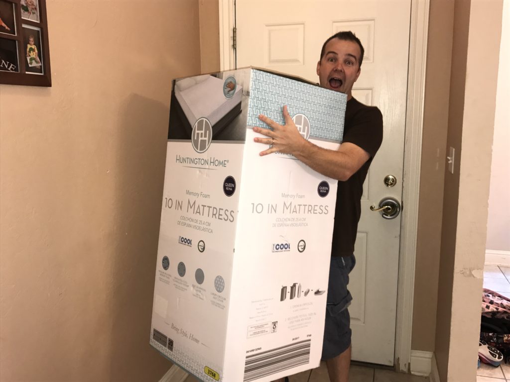 I drove to the grocery store as fast as I could and right next to the fruit was what I had dreamed about. Most people dream about winning the lottery. I dream about mattresses. I dragged the giant box it came in onto the aisle. There was a handle, so I carried it to the checkout line. As I sat it down, I realized the box had wheels. I couldn’t wait to get it home. With super strength, I launched the old mattress off of the box spring.