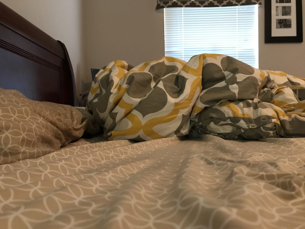 We’ve never made our bed in the morning, so at night if I went to bed first, I rearranged the sheet and comforter so we both could just pull the covers back and lay down. But once she arrived, she would get under the covers and then begin to turn like a tornado until all I was left with was a sheet corner. So like a tug-of-war battle, I pulled back and fought for my half.