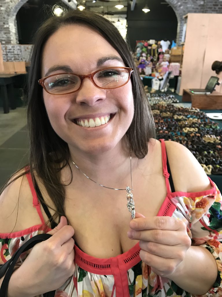 Our first stop was the Charleston City Market in the heart of downtown Charleston. Lindsey loved all of the shops from the local vendors. One of the vendors had oysters that you could purchase that had a pearl inside. And inside was either a white, black or pink pearl. Lindsey bought one and when we opened the oyster, it had a pink pearl inside. She was able to pick a necklace that the pearl could be set in. She picked the mermaid.